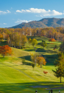 爽やかな風が抜ける高原コース。春は桜、夏は涼しさ、秋は一足早い紅葉に心がほどける!白山連峰を望むティーからのびのび一打、広い空へ振り抜く気持ちよさに季節の景色がそっと寄り添う