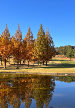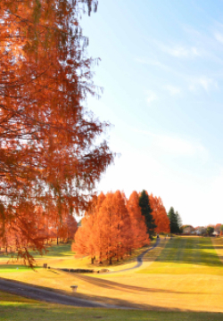 日本シニアオープンや関西オープンの舞台。距離が長く広いニューコースと、短めで戦略的なオールドコースの2タイプ36ホール!10月末〜12月初旬、14番ティーを彩るメタセコイヤの紅葉が見どころ