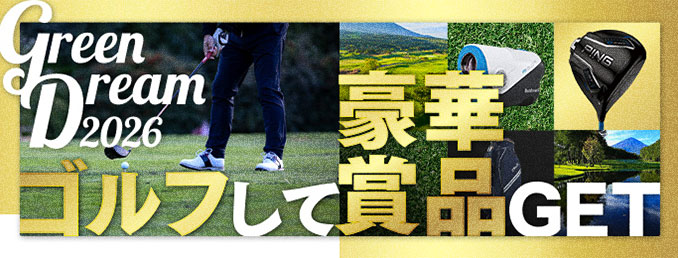 本キャンペーンにエントリー&2026年1月1日(木)~5日(月)にGDOゴルフショップで合計5,000円(税込)以上のお買い物をした方の中から70人に1人に、無料プレー相当クーポン(上限3万円)が当たります。 |