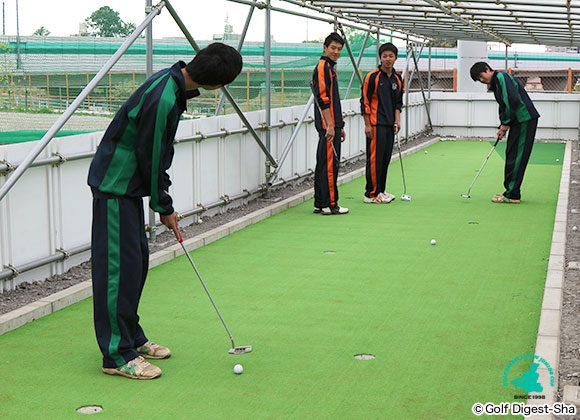 「少数部員のミニ合宿をよくやりまして、ラウンドを見て回ってます。週末にキャディをしてコースを使わせてもらうゴルフ部が多いけれど、うちは週末も活動できる状況で」
