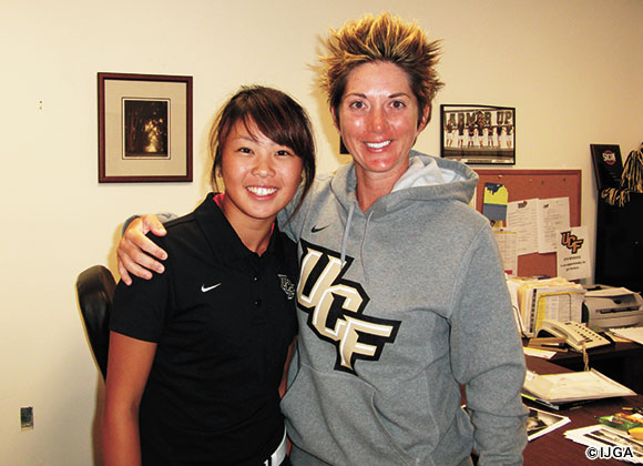 彼女は高校2年の秋からインターナショナルジュニアゴルフアカデミー(IJGA)という全寮制中高一貫校に入りました。小中高12年のアメリカ教育制度の、11年生として。そしてツアー(IJGT)に出場していたところ、最終学年のシーズンで13戦出場のうち7勝をあげたのです。こうなると、多くの大学ゴルフ部から声がかかります。