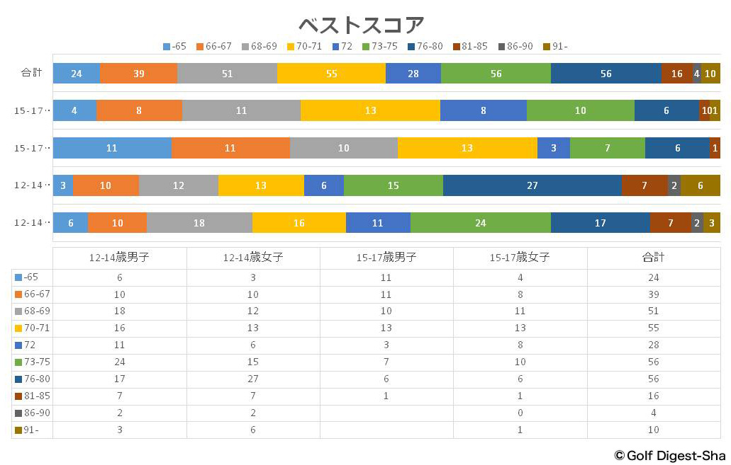16、17年前に「ベストスコア60台の中学生座談会」(男子)をやったことがあります。今回のグラフによれば34人が該当しますが、当時は15人ほどでした。