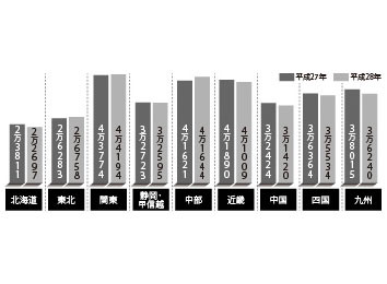 一般社団法人日本ゴルフ場経営者協会(NGK)の発表の「ゴルフ場利用税の課税状況からみたゴルフ場の数・利用者数等」の平成28年度データを集計した。