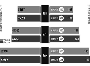 夏から全国的に不順な天候が続き、九州北部豪雨などの天災が各地で発生した平成29年。その影響が営業面にどのように出たのか、年間入場者数を調査した。