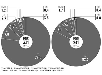 「会員権相場は株価に連動する」と言われたのは昔の話。世情を反映した相場は、現在どうなっているのだろうか。関東ゴルフ会員権取引業協同組合と関西ゴルフ会員権取引業協同組合が発表している20年5月2週目時点の相場を基に集計した。