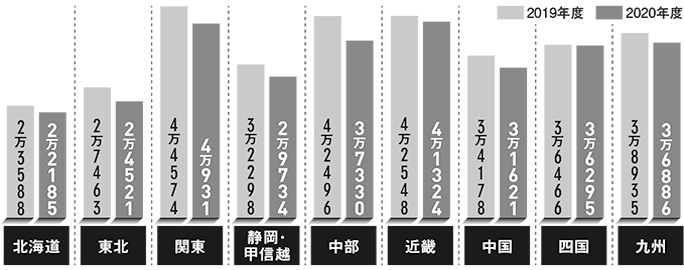 課税状況からみたゴルフ場の数・利用者数等」の2020年度(20年3月〜21年