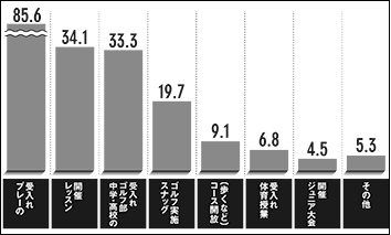 少子化やシニアゴルファーのリタイアなどによって、ゴルフ人口が大きく減少することが懸念されている。全国的に新規ゴルファーの育成が急務となっているなか、将来を見据え、ゴルフ体験教室などのジュニア育成に積極的に取り組むゴルフ場が増えている。そこで、4年ぶりにジュニアの受入れ状況について調査した。