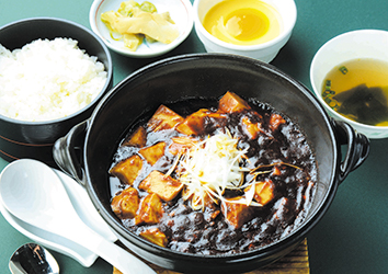 麻婆豆腐。10年以上前から支持され続けている、平川CC3大定番料理の1つ。山椒の香りと豆豉のコクがクセになる一品で、辛さもお客の好みに合わせて調整している。
