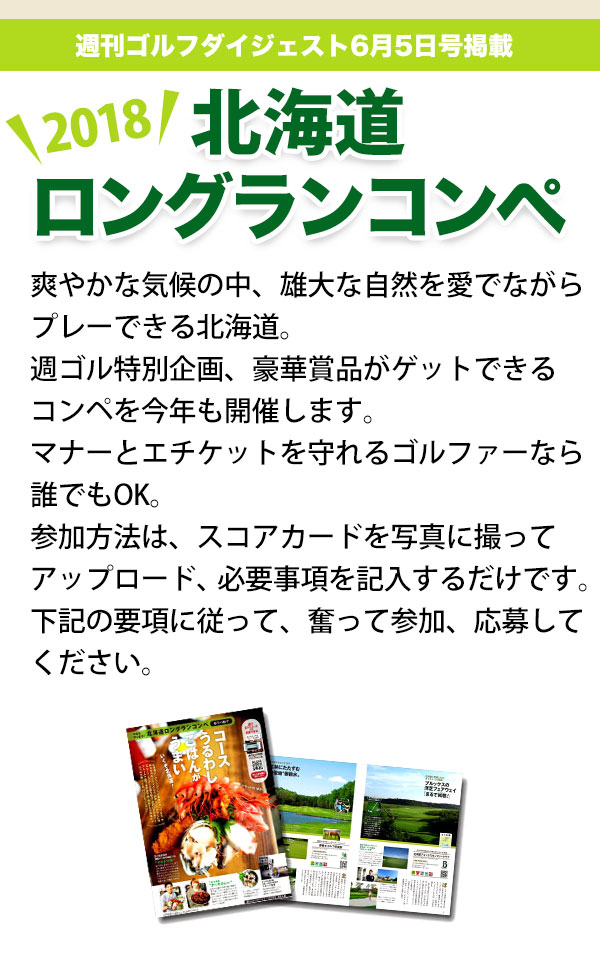 - ご応募いただいたスコアカードおよび写真は返却いたしません。また、発表までの個別順位のお問い合わせ、さらに賞品の変更・交換には応じません。