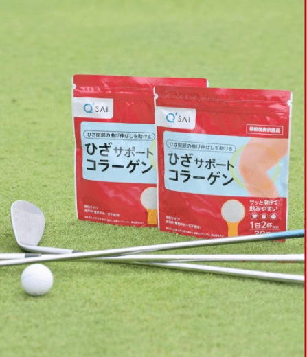 ゴルフのスイング時にひざが使いにくかったり、日常生活で階段の上り下り、立ったり座ったりする動作、長時間歩くのがつらいのは、軟骨成分の減少が原因かも。キューサイの『ひざサポートコラーゲン』は、そんなひざ関節の曲げ伸ばしを助けてくれる、日本初の機能性表示食品だ。