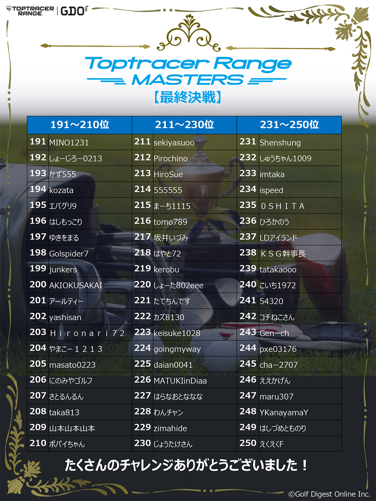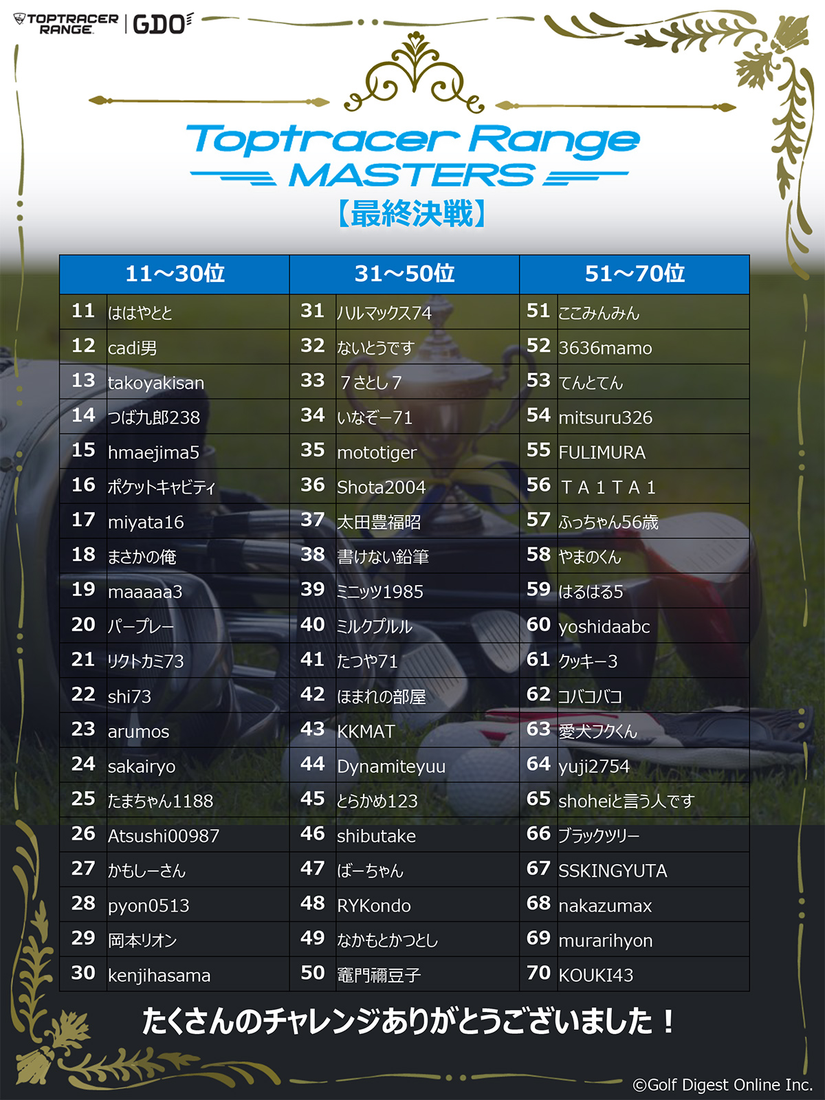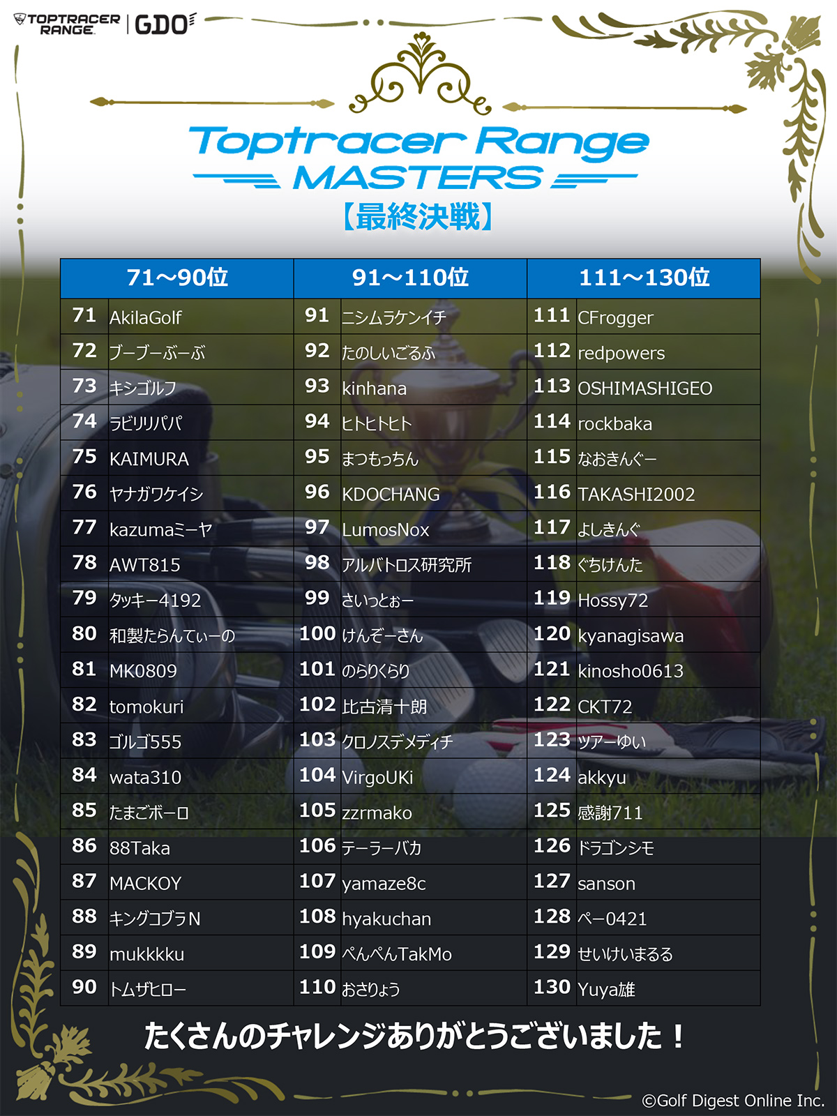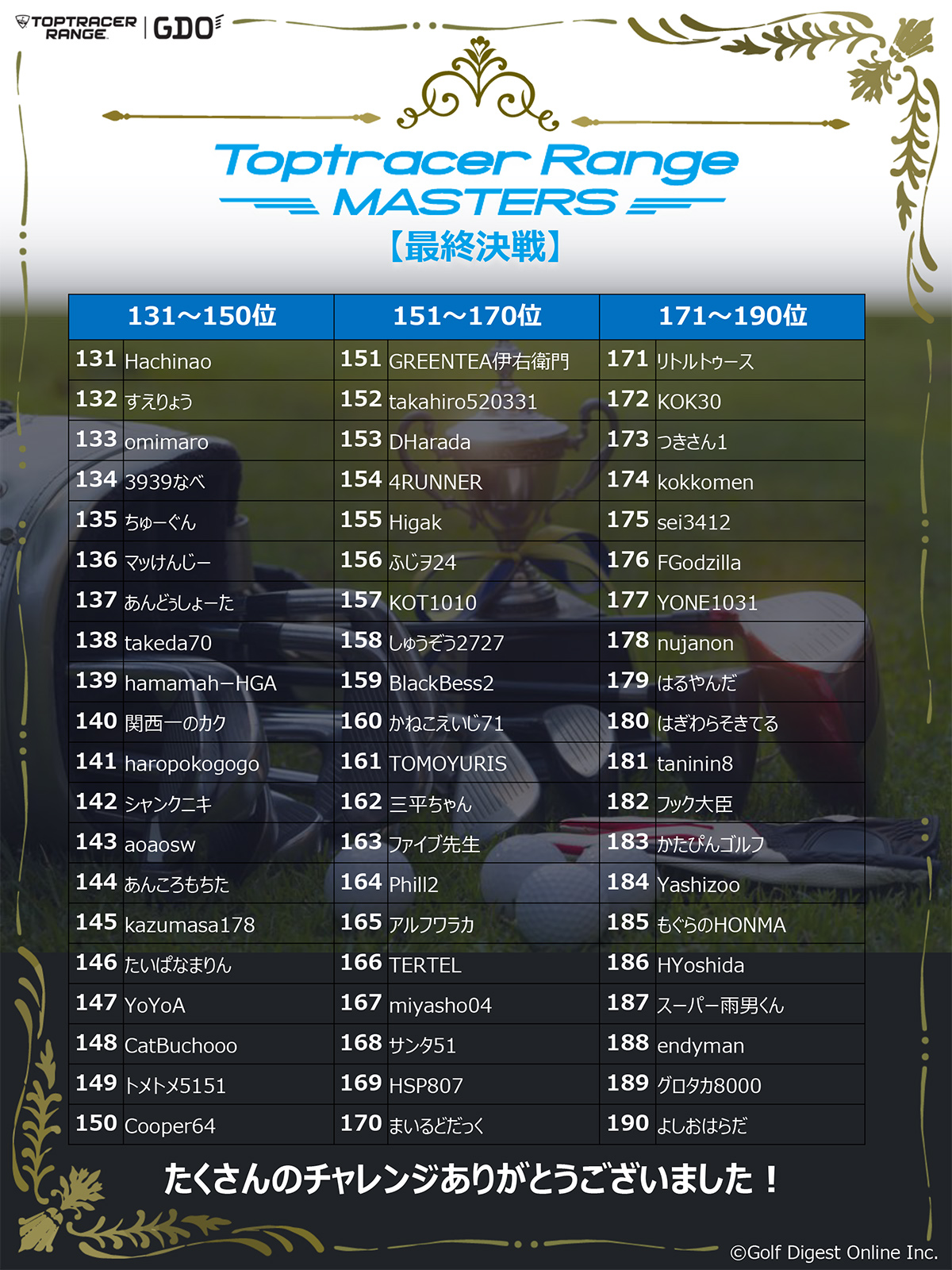 「Toptracer Range MASTERS」は、全国のトップトレーサー・レンジで腕を競う新感覚の大会。